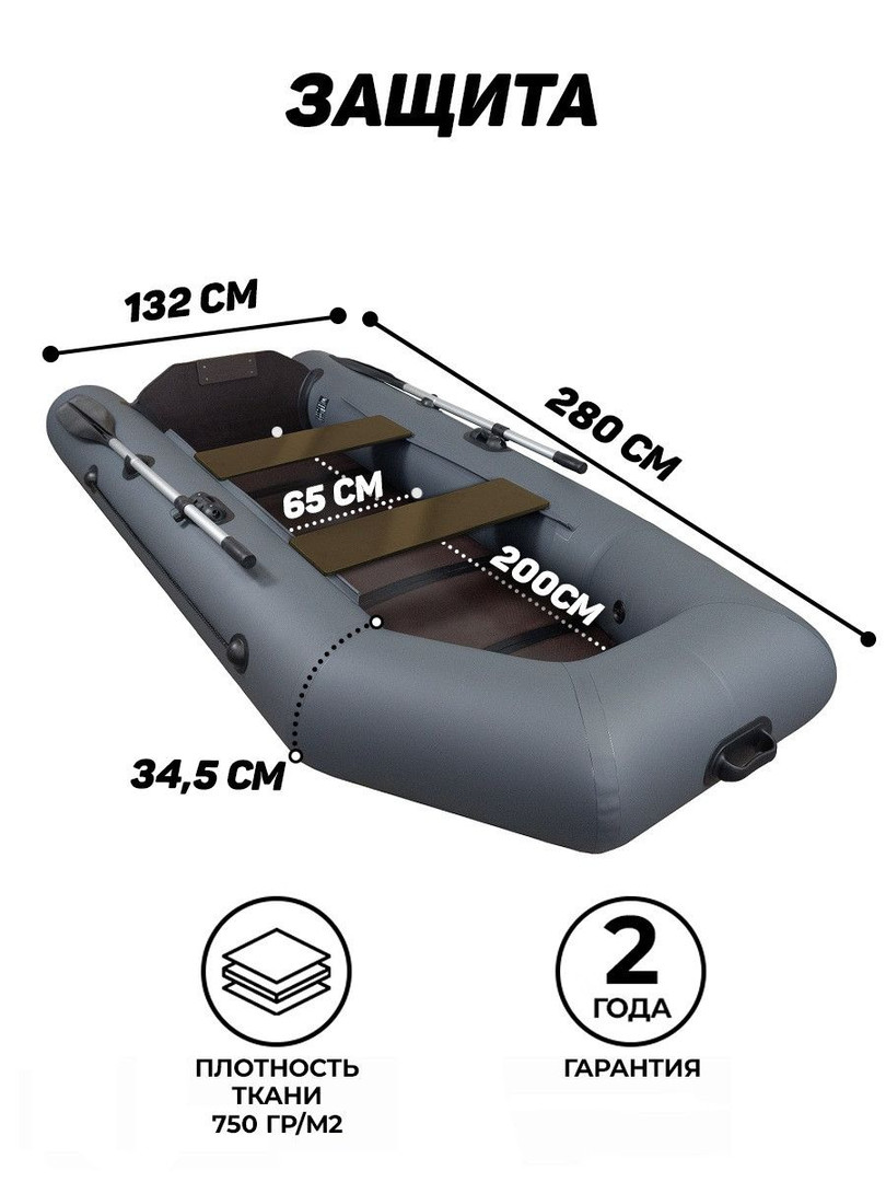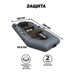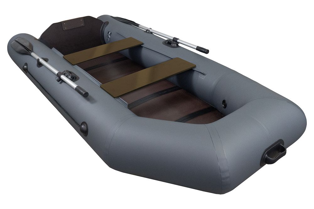 При производстве этой модели используется ПВХ материал плотностью 750 г/кв.м зеленого, серого цвета, или комбинации светло-серого, синего и др. цветов. Дно слань-книжка киль позволяет комфортно перемещаться в лодке, а также обеспечивает устойчивость конструкции.